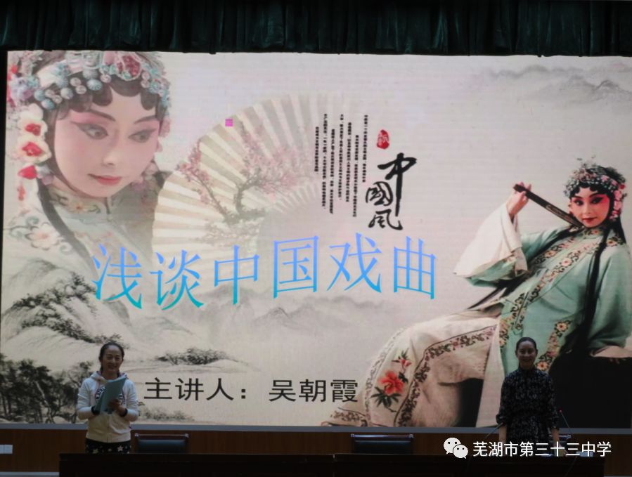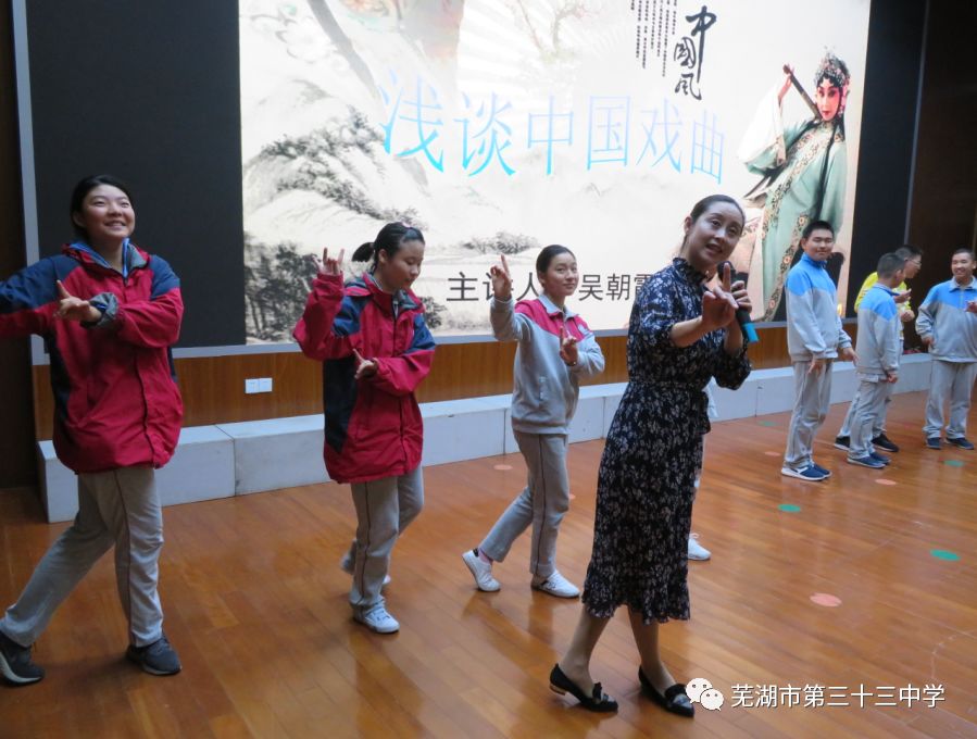 为传承弘扬我国戏曲文化传统,培养学生戏曲艺术的综合素养,营造校园戏曲文化氛围,10月21日,我校邀请芜湖市艺术剧院黄梅戏演员吴朝霞老师来校为同学们开了一场精彩纷呈的戏曲讲座。活动由卜文娟老师主持。