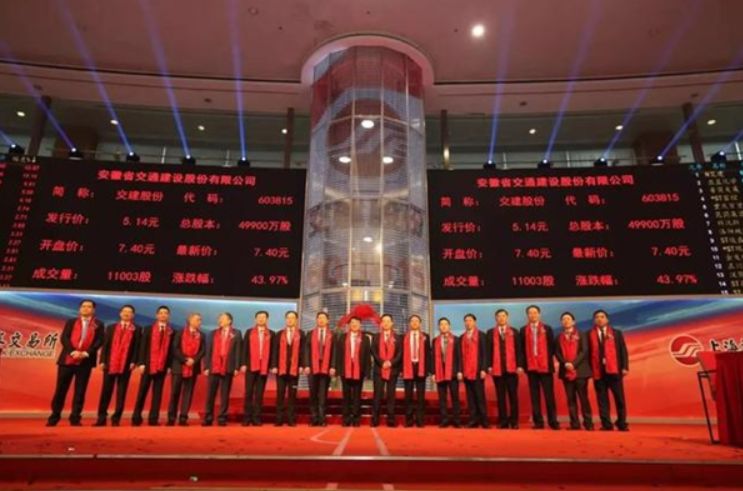 10月21日,安徽省交通建设股份有限公司在上交所正式敲响A股上市铜锣(股票简称:交建股份;股票代码:603815),这是庐阳区本土培育的第9家上市公司,也是合肥市2019年度上市的首家A股上市公司。截至目前,合肥上市公司增至50家。 (李界 曹芹 合肥在线记者戴小花 文/摄)
