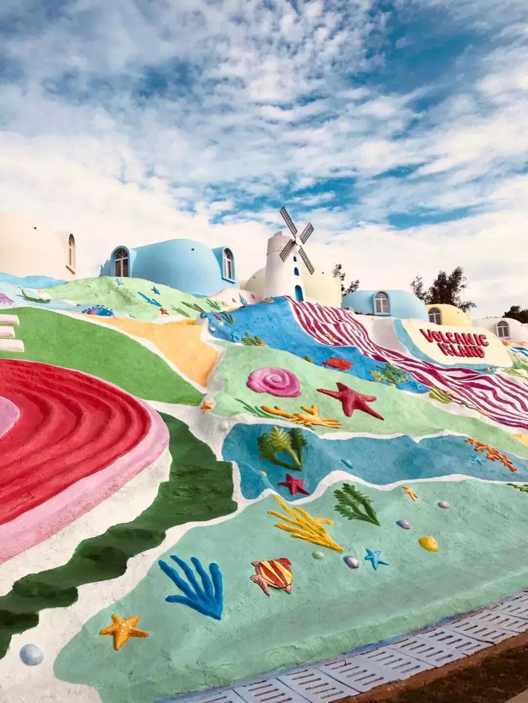 不,这里是漳州火山岛地学博物馆!前面是橘红色的墙,后面则是蔚蓝的大海
