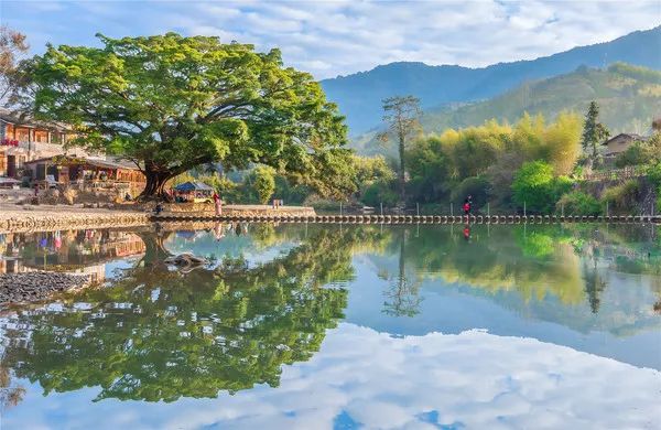 悠闲漫步云水谣:古道旁,山脚下,溪水边,田野间,一座座土楼星罗棋布的呈现在眼前,宛如诗画。还有那鲜为人知而又神奇的连理枝、夫妻树等待着你前来“寻爱”,千年榕树相互交织,见证了古老的铭心的爱情。