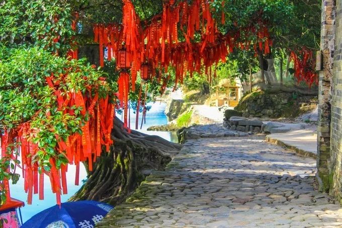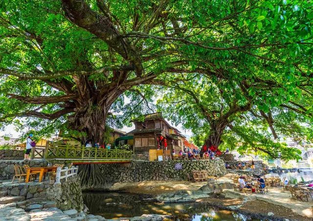 一条古老的溪石小道交叉穿梭在老榕树的庇荫下