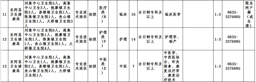 请在附件《2019年东阿县公开招聘教师和乡镇卫生院工作人员岗位表》中查询。