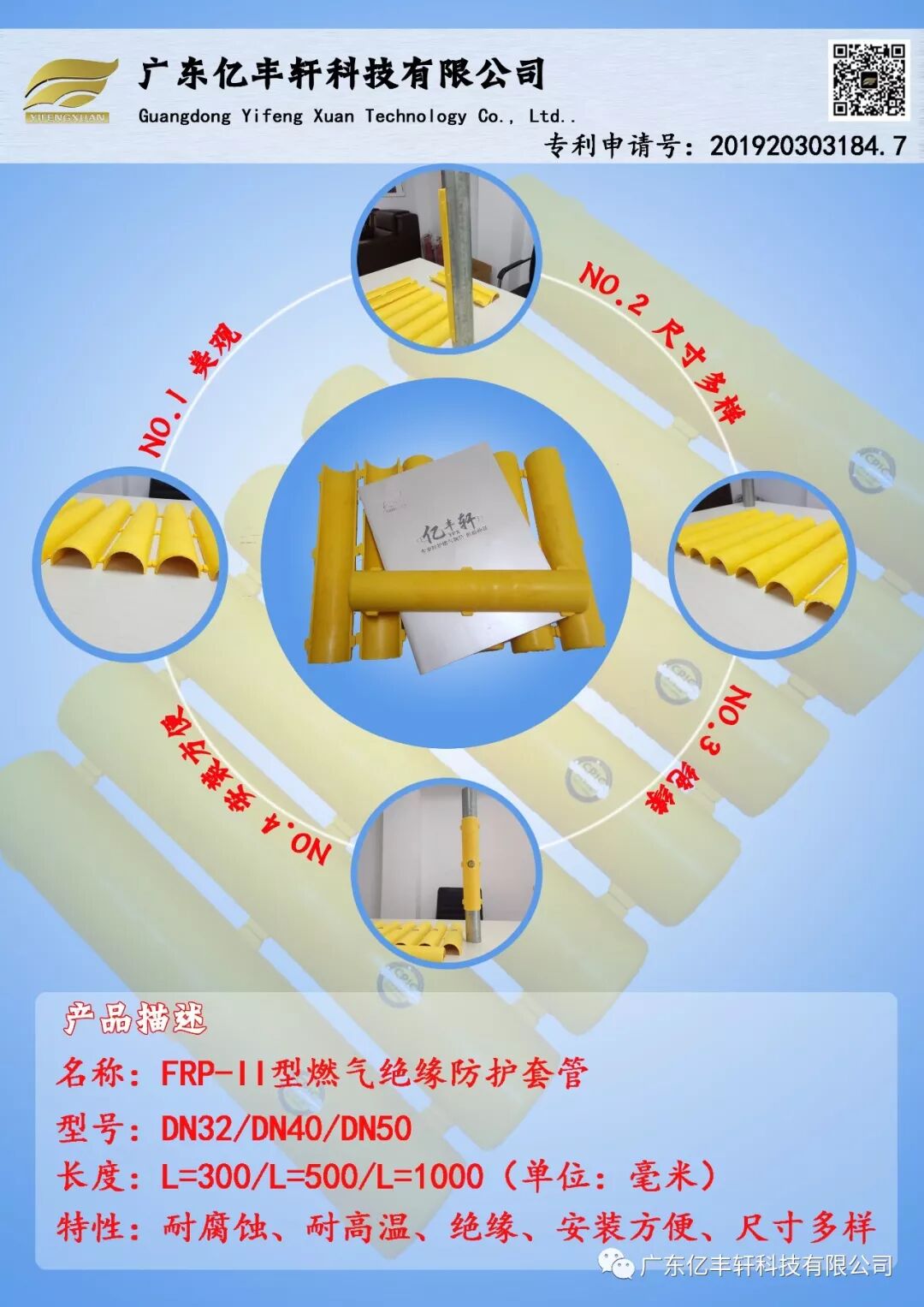根据燃气行业的需求,根本上解决红线内燃气钢管易腐蚀的难题,我公司新近研究成功的FRP-Ⅱ型燃气防腐钢管,成为燃气钢管腐蚀穿孔的克星;FRP-Ⅱ型燃气绝缘防护套管,有效解决电线漏电引发的燃气管道爆炸的隐患。我们的产品已通过质量ISO9001、环境ISO14001等国际认证,生产产品与国际市场接轨,迎合国际大趋势。产品实现专业防护燃气钢管50年,刚刚推出就得到了燃气行业的广泛认可,已在广州燃气集团,新奥燃气集团,醴陵中油燃气、珠海燃气等公司成功应用。