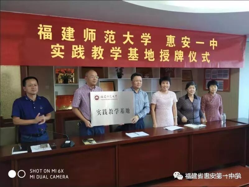 10月16日,福建师范大学与惠安一中共建“实践教学基地”举行授牌仪式。福师大物理与能源学院院长黄志高、物理与能源学院学术委员会主任林秀敏、物理与能源学院物理系党支部书记黄树清,实习带队老师郑渊芳;惠安一中校长周锦忠、副校长张惠聪、教务处主任孙经等出席仪式。物理学科指导教师、高一年结对班主任、师大实习队队员等参加仪式。
