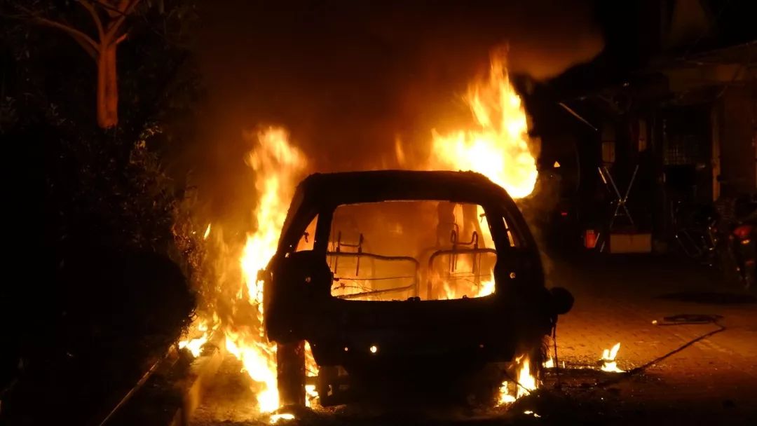 江西省九江市一辆停放在小区内的四轮电动车忽然起火,情况十分危险!所幸无人员被困