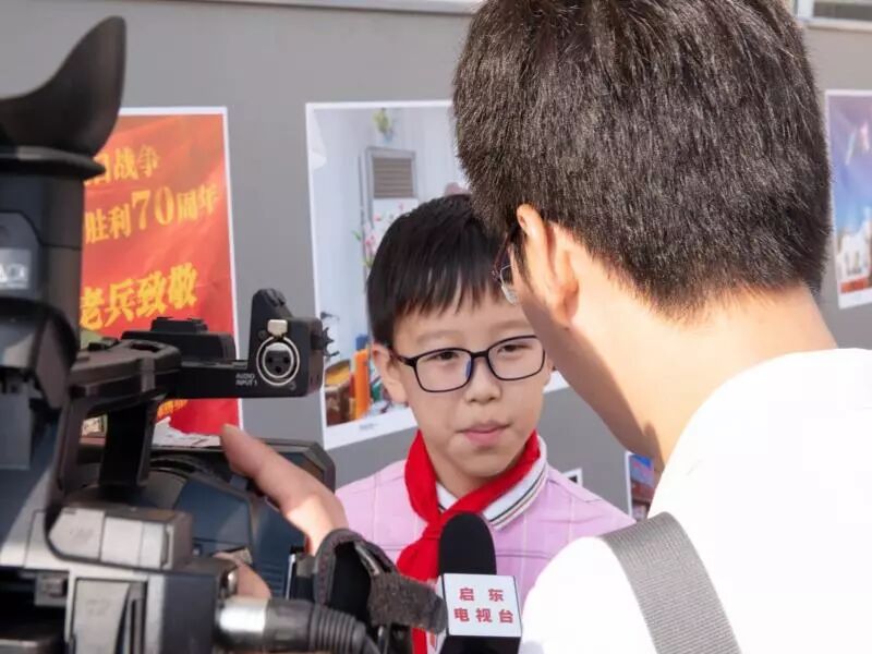 启东电视台的记者也来到校园,就本次活动随机对两位学生进行了采访,小同学们热切地对作品提出了自己的想法与见解;同时,顾沈玉副校长在镜头前,也表达了香格小学校园活动开展的初衷与多彩活动入校园的美好愿景。