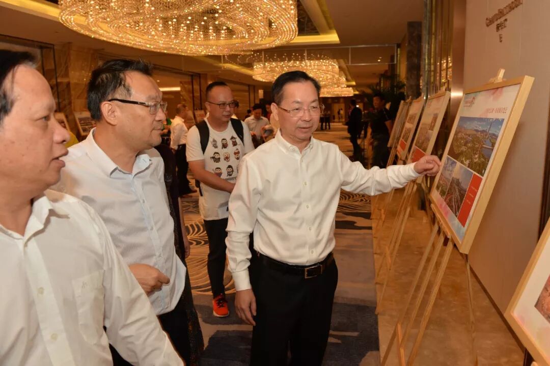 ▲来明工业(厦门)有限公司董事长、厦门市台商协会荣誉会长吴进忠参观影展。