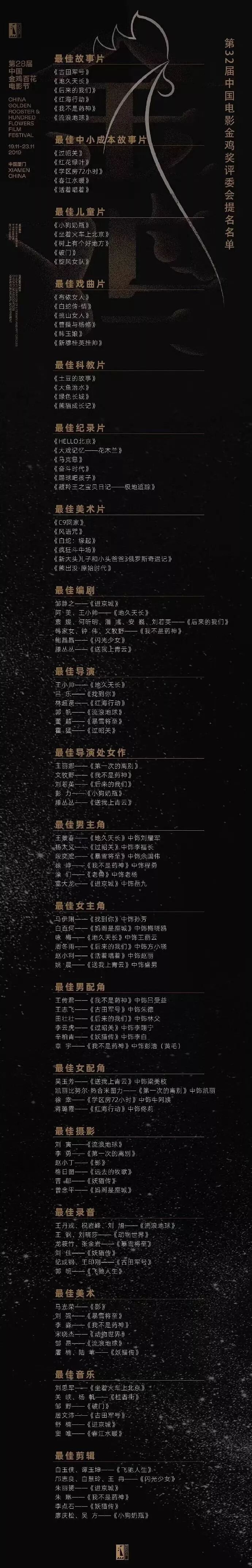 附:第32届金鸡奖提名名单