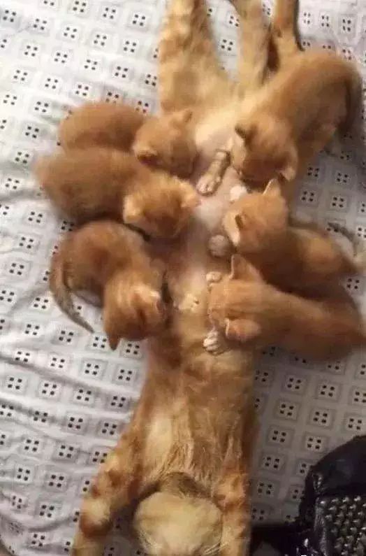 只不过橘猫的开心都是一时的,刚当妈妈的时候什么都不懂,总以为孩子就是天使,但是后来才知道孩子都是来折磨自己的“魔鬼”啊!这只橘猫可能都要后悔自己之前那么开心了吧,三天后就开始了生无可恋的日子!这些小奶猫喝奶可厉害了,别的小奶猫喝饱了就会乖乖的睡觉,但是这几只小奶猫就跟个吃不饱的样子,总是喜欢趴在猫妈的身上来喝奶。猫妈感觉自己就跟个被掏空了一样,这个喂奶姿势也是笑翻人了,主人看了都有点忍俊不禁。
