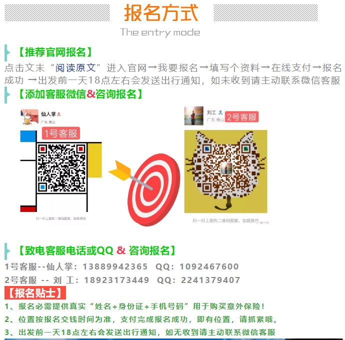 1、为保证活动顺利进行,领队可能根据当天情况,适当调整行程。