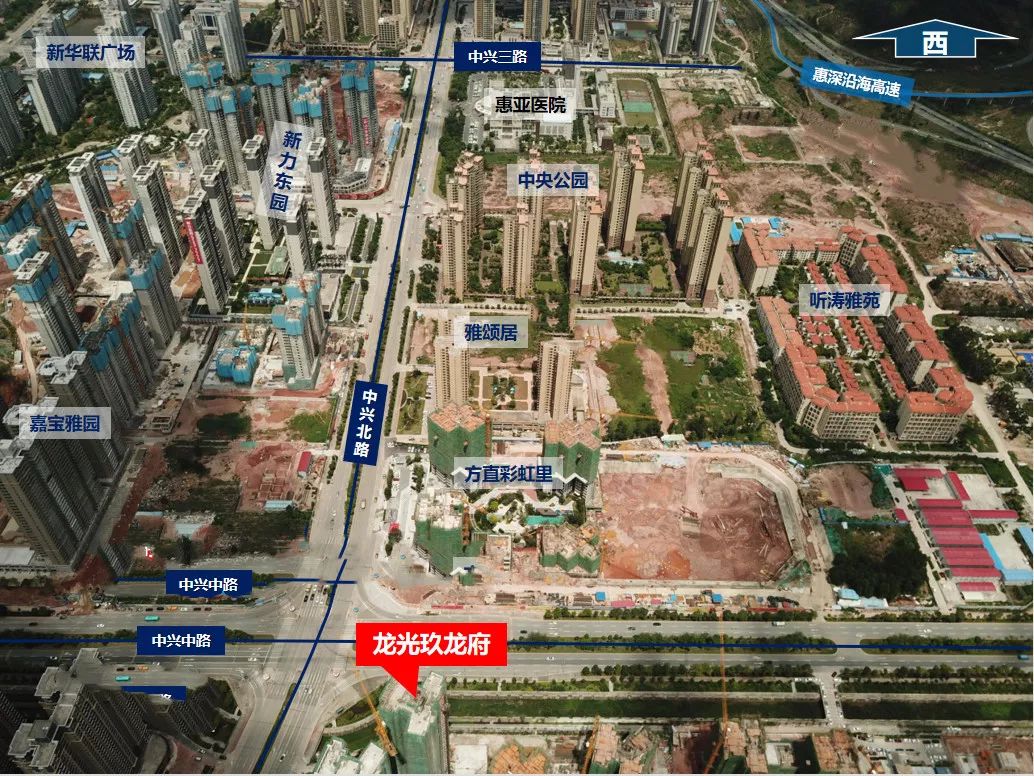 【区位介绍】项目位于大亚湾中心北区,中兴中路与中兴北路交汇处,也是大亚湾行政中心所在地。南部为大亚湾常住人口密集的澳头老城区,西侧为大亚湾西区和深圳坪山方向,北部靠近惠阳淡水城区。中兴北路西行连龙海二路对接深圳坪山,转入大亚湾大道南北可连通澳头和惠阳淡水。