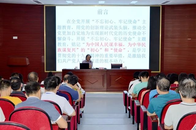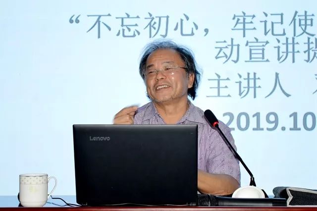 “历史是最好的教科书,学习历史尤其是党史、新中国史,是广大党员干部的必修课,是增强“四个意识”、坚定“四个自信”、做到“两个维护”的重要途径。”讲座中,邓勤副教授紧扣“不忘初心、牢记使命”主题教育,围绕“新时代共产党员的初心与担当”这一主题,从开展本次主题教育的“重要意义、总体要求、根本任务、具体目标、重点措施、明确要求”六个方面入手,以诙谐幽默的语言,声情并茂的阐述了从马克思主义到习近平新时代中国特色社会主义思想之间的演化过程和新中国史。