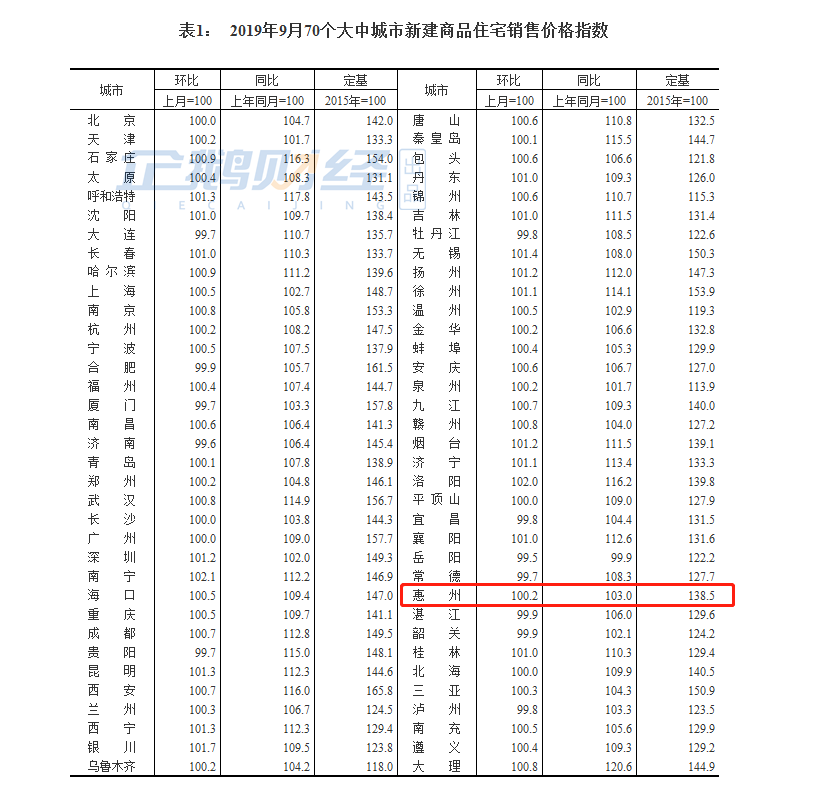 另外我们看看惠州,惠州9月新建商品房住宅销量价格环比上涨了0.2%,同比上涨3%。与8月的增长幅度相比较下看,9月的增长幅度不大,总体稳定。