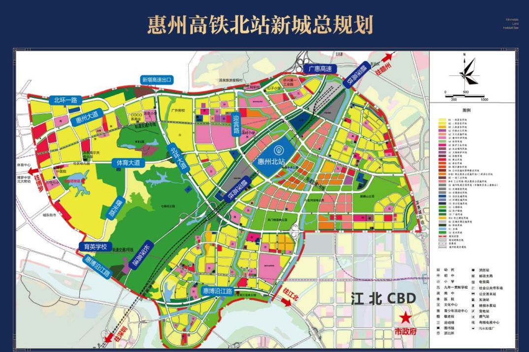 目前来看,赣深高铁周围的配套还是很缺乏的,共享的江北配套,在刚需自住上来讲,生活上有所不便。北站新城未来有可能是继惠阳南站之后,城区与深圳关系最密切的一个区。看看他的规划,对比上图,能有结论吧。