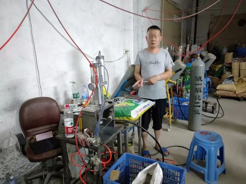 专案组经过20余天的侦查取证,成功锁定嫌疑人灌装、销售 " 笑气 " 工厂,专案组同佛山警方通力合作,于5月19日,在佛山市顺德区均安镇畅兴工业园区 " 笑气 " 灌装厂内,成功将犯罪嫌疑人袁某抓获,并当场查获成品 " 笑气 " 液化气体钢瓶9万余支、液化 " 笑气 "180罐、" 笑气 " 液化气体钢瓶灌装机11台、" 笑气 " 液化气体钢瓶空瓶7万余支。