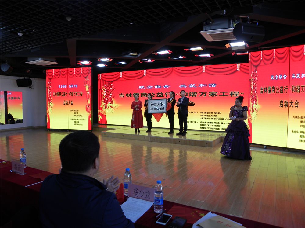 为了更好地弘扬中华民族的传统美德,促进家庭和谐、邻里友善,10月22日上午,由绿园区文明办、区妇联、普阳街道办事处主办,吉林省儒商文化产业发展有限公司、区文化馆、普阳街道建阳社区承办的“吉林儒商公益行 和谐万家工程”活动在绿园区文化馆启动。