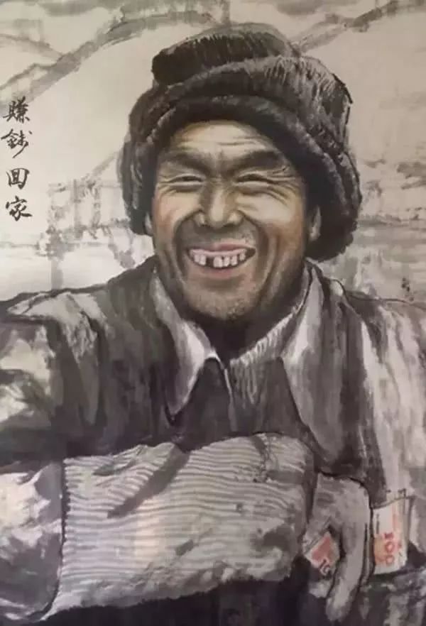 细看这幅《打工兄弟》,整幅画面干净、利索,没有过多的渲染与突出,却使整个画面的人物栩栩如生。“传神”是我国绘画中的传统提法,在塑造人物的静态时加入了现实观察的表现力,未刮的胡须,带着劳动痕迹的衣服,还有扬在脸上的笑容都是以形写神,形神具备的艺术效果。