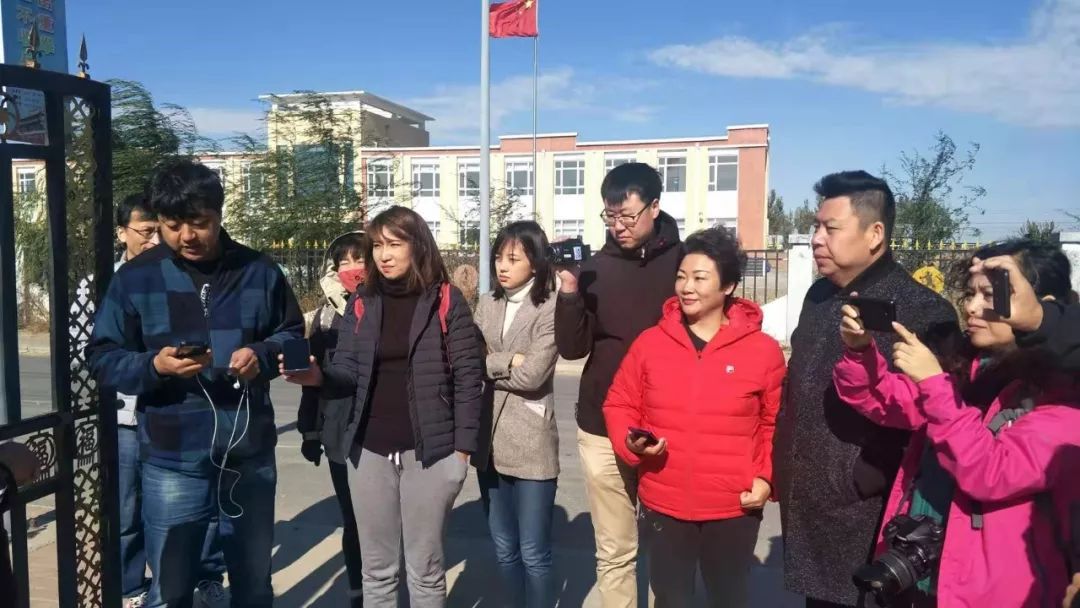 (熊广波女士与中央电视台记者、吉林博物馆孙主任共同研究陨石掉落方向)
