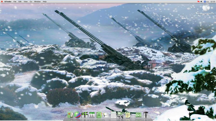 电脑壁纸是几挺高射炮竖立在雪地里。