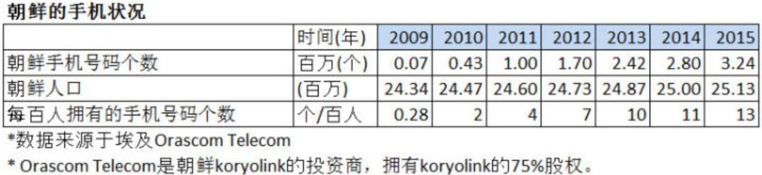 由于埃及电信运营商Orascom拥有高丽电信75%的股权,而高丽电信又垄断了朝鲜境内的手机发行和网络服务,因此在这波手机普及中赚的钱大部分都进了Orascom的口袋。