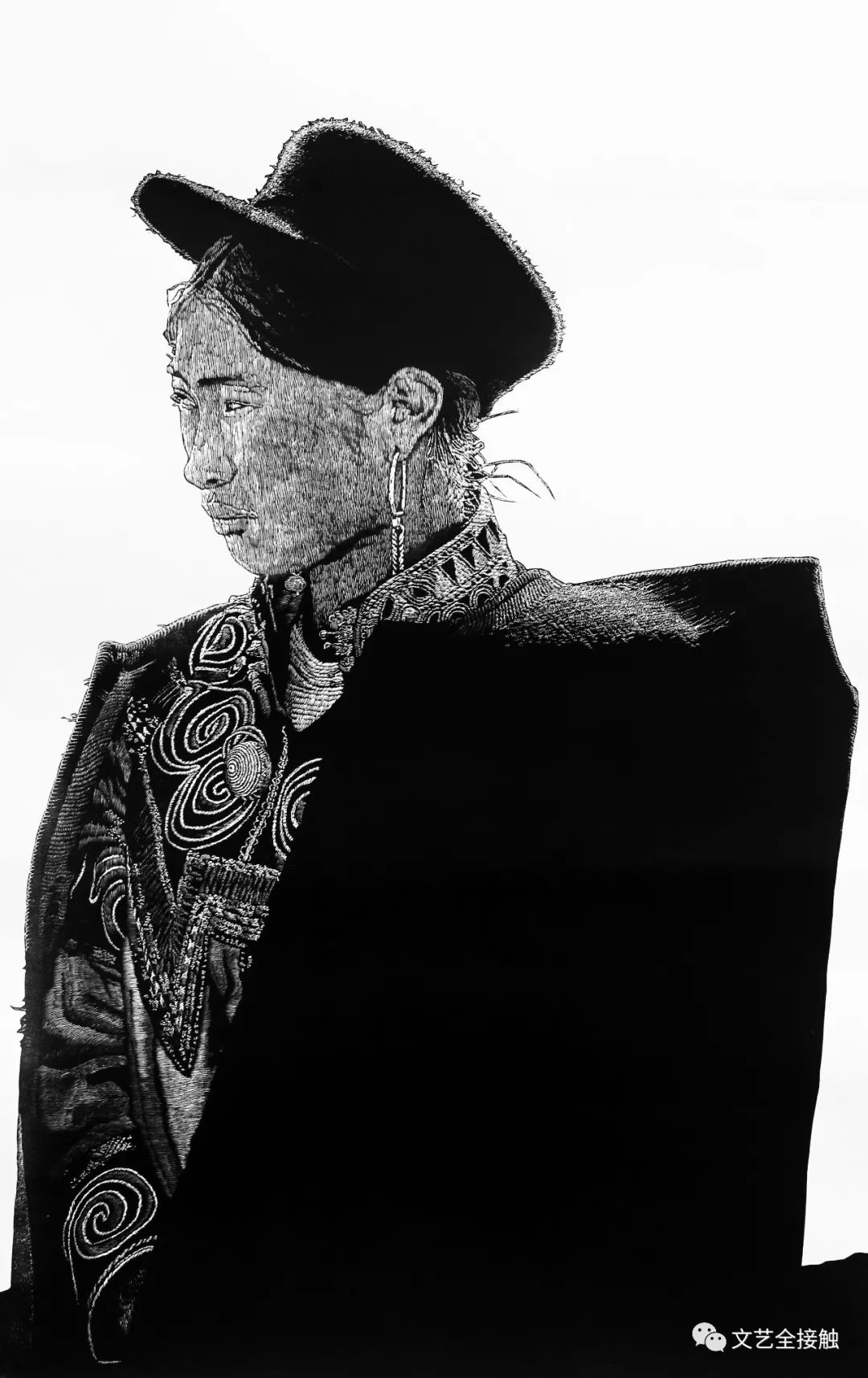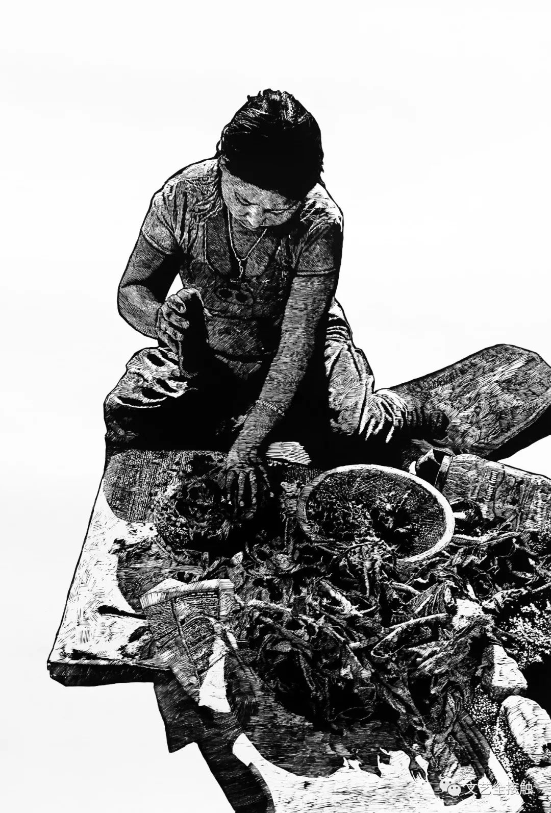 《尼泊尔少女》 黑白木刻 120cmX80cm邓雨辰(四川·成都) 2019.8