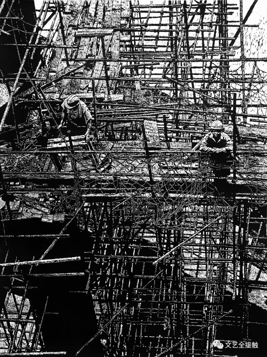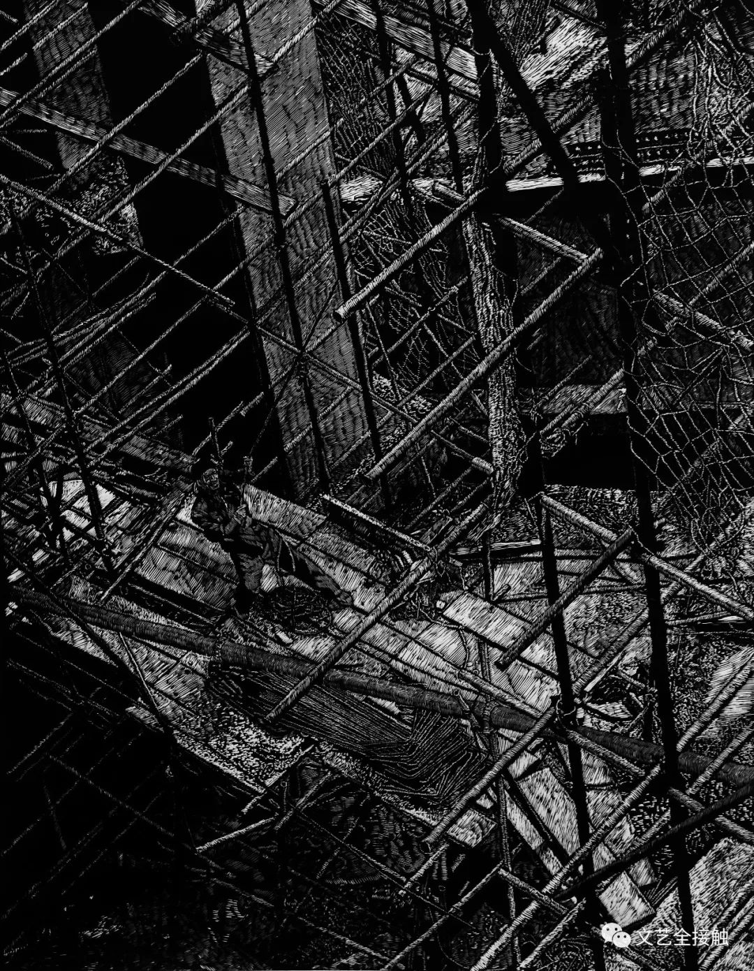 《中国构架》 黑白木刻 120cmX80cm 兰俊明(四川·攀枝花) 2019.8