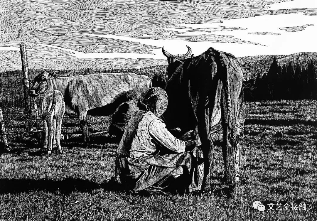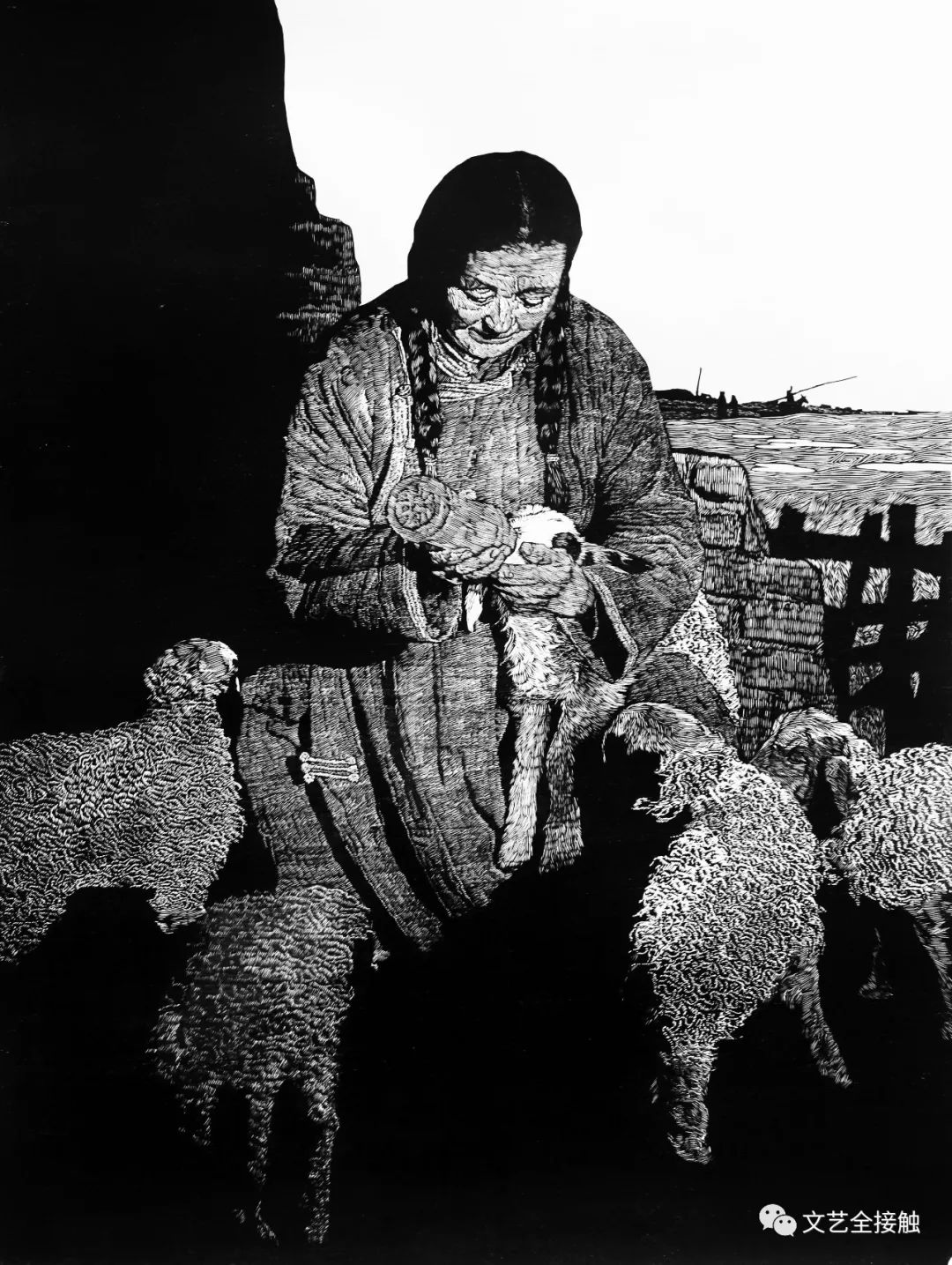 《额俊拉.清晨》黑白木刻 80cmX120cm 张双印(天津)2019.8
