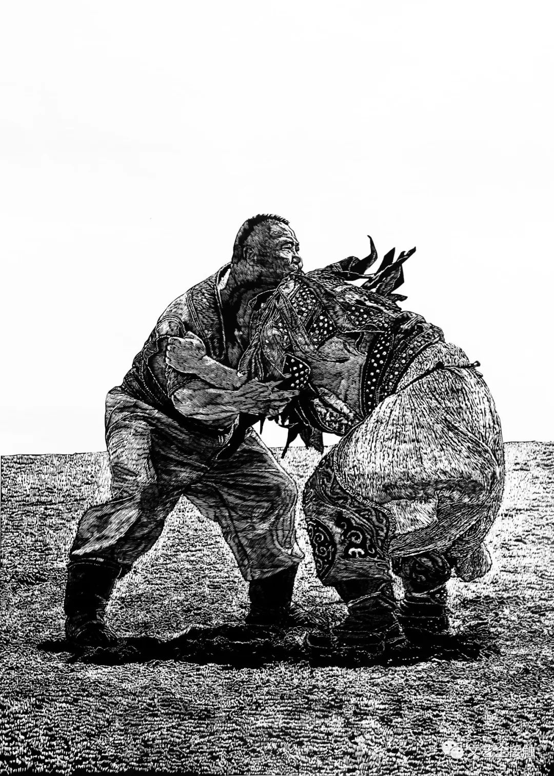 《巴彦雄鹰》 黑白木刻 120cmX80cm