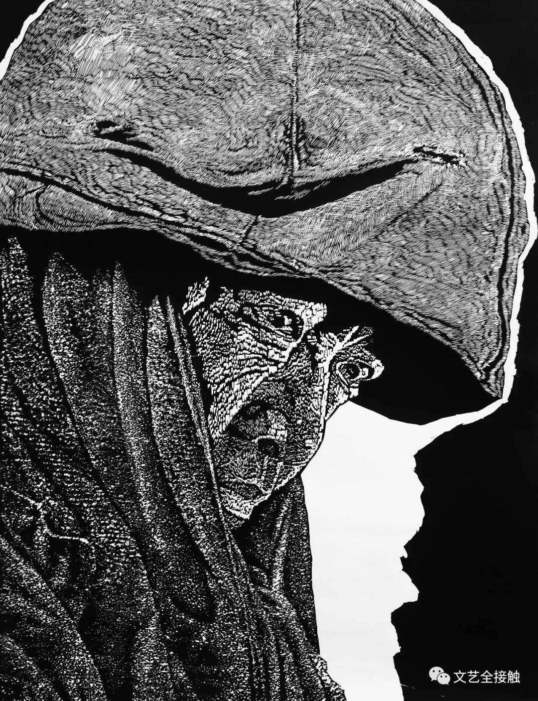 《岁月刻痕》 黑白木刻 120cmX80cm严明荣(四川·阆中)2019.8