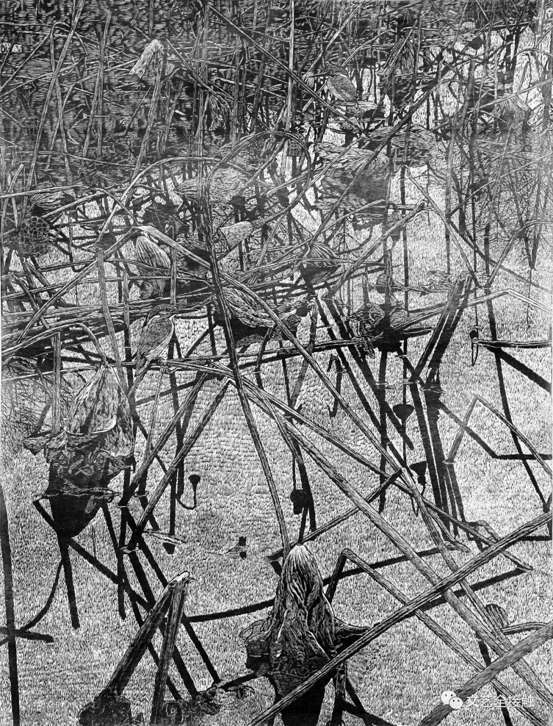 《编制梦想》 黑白木刻 120cmX80cm 杜美林 (四川·广元) 2019.8