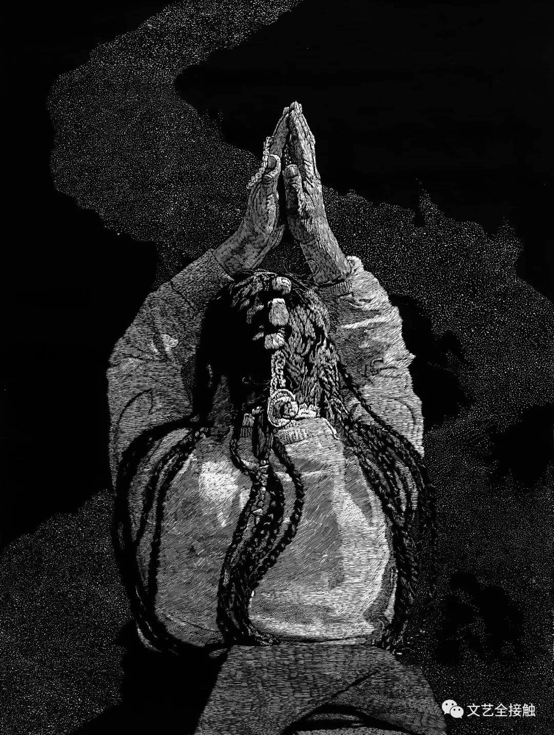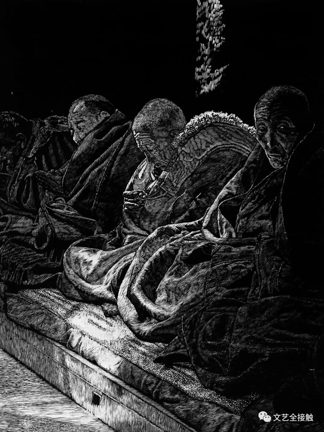 《佛光灵现》黑白木刻 120cmX80cm 张双印(天津)2019.8