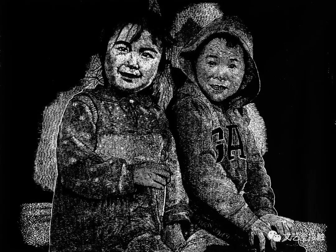 《我和我的姐姐》 黑白木刻 80cmX120cm 黄莉(四川·江油) 2019.8