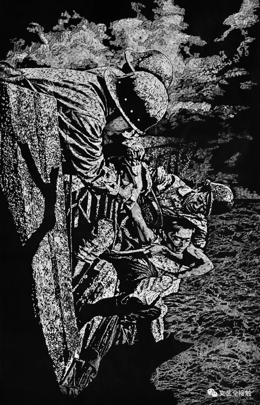 《危急时刻》黑白木刻 120cmX80cm 娄梦竹(重庆师范大学美术学院版画专业硕士研究生) 2019.2