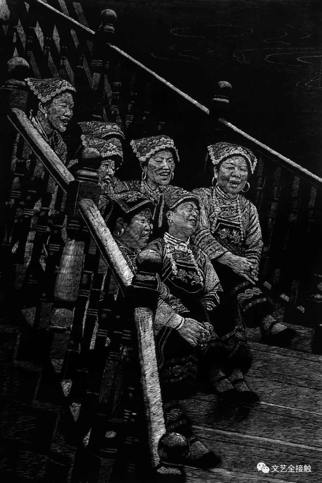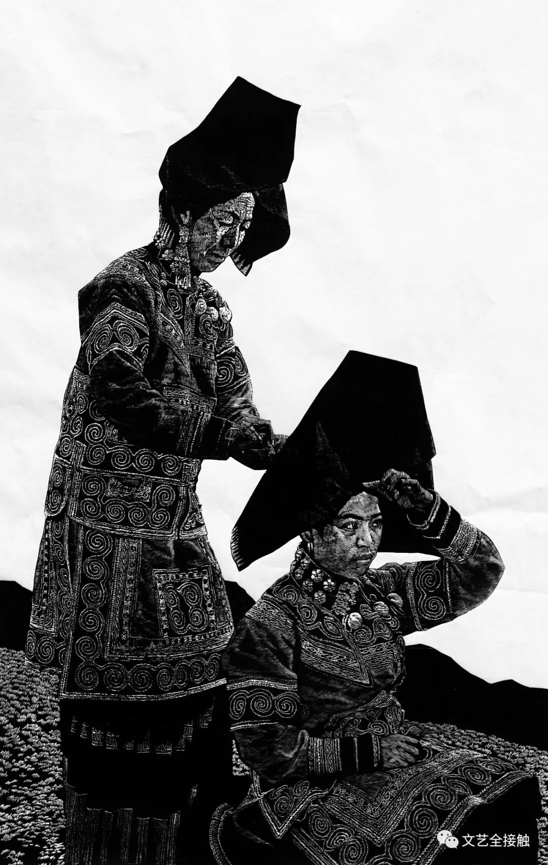 《布依族大妈们》 黑白木刻 120cmX80cm梁晓彦(贵州·贵阳) 2019.8