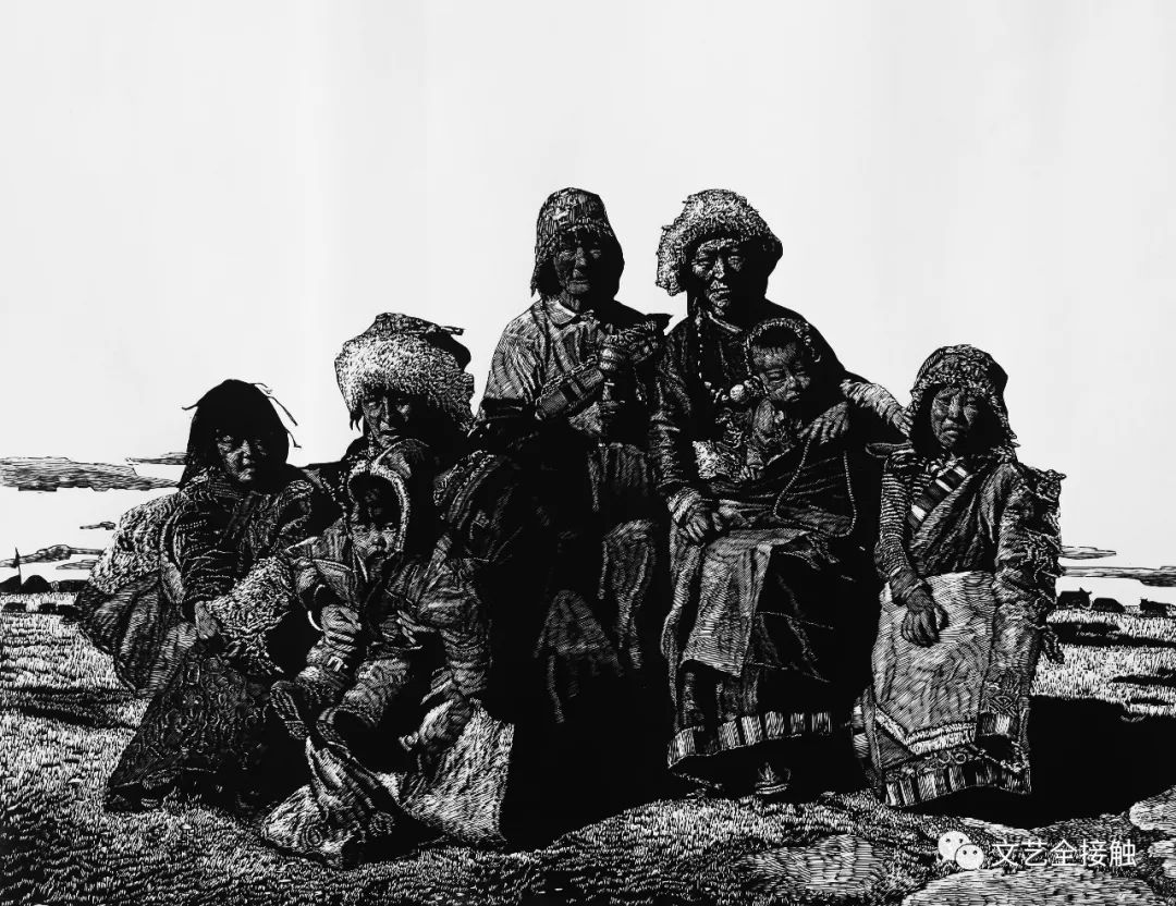 《沐浴阳光》 黑白木刻 80cmX120cm陈怡韬(四川·阿坝) 2019.8