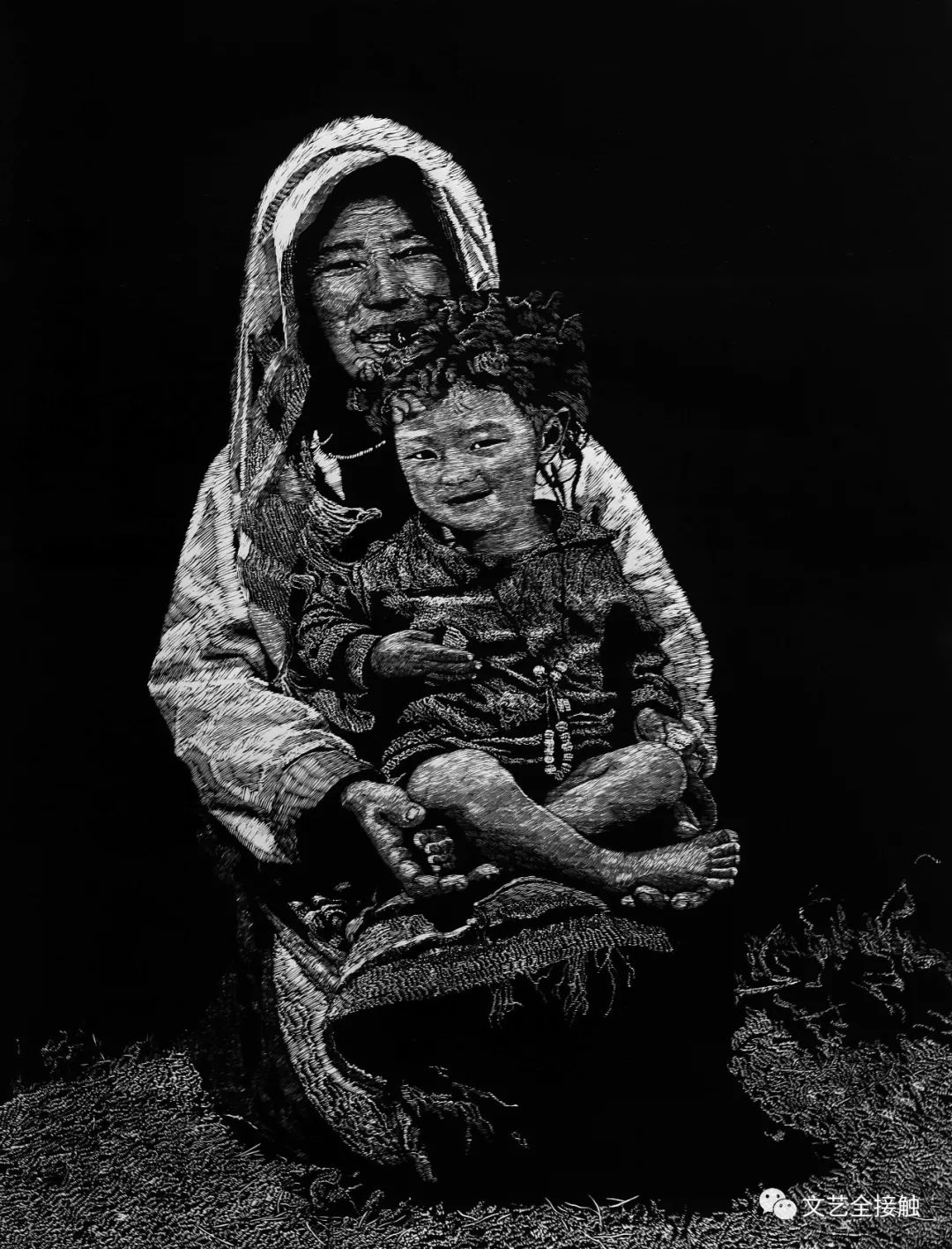 《母子情深》 黑白木刻 120cmX80cm 李洋(江苏·宿迁) 2019.8