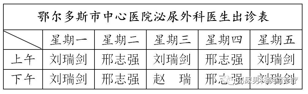 泌尿男科医生出诊表