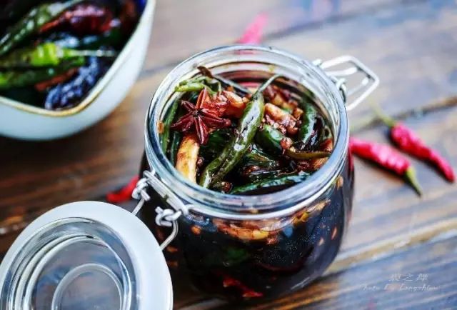 [所用食材]:黄瓜750g、姜芽500g、尖椒300g、油20g、盐50g、酱油500g、花椒1茶匙、八角3个、香叶10片、桂皮5小块、大蒜2头。
