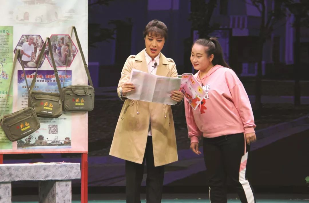 而在徐雪涛看来,朴素的挎包更是无形中拉近了宣传员和村民之间的距离,“去村里,拿着公文包或者皮包,都会让人产生距离感。可这样一个挎包,老百姓一看到就会觉得亲切,这样,无论宣传员宣传什么政策,老百姓都更容易接受了。”“红色挎包好像有一种魔力,就像百宝箱,大到国家的大政方针,小到一个地方的惠民新政,都可以装在里面。”徐雪涛就被这种“魔力”吸引了。所以,即便已经在临清市京剧团团长的位置上退下来很长时间了,他在接到鲁霞的邀请时,还是毅然决定接下这个“差事”。原型是接地气的红色挎包宣传队,这部京剧小戏自然也会接地气。虽然有京剧唱腔,但是演员却着力使用观众熟悉的举止动作,即便是国家大政方针,也是用老百姓的话讲出来……30分钟的《红色挎包》就像是把老百姓的生活搬到了舞台上,“整场看下来,我都没有看出‘演’的成分,好像就是我们的红色挎包宣传员进村的场景。”高新区韩集乡宣传委员、红色挎包宣传队员石倩说。