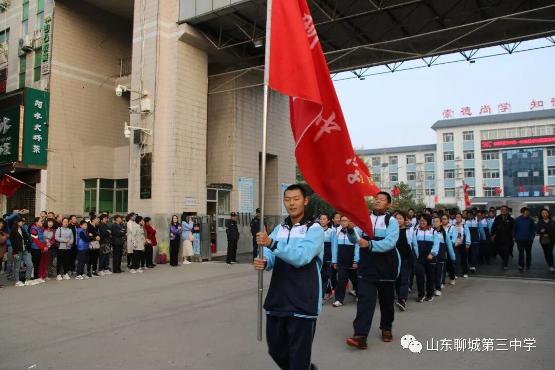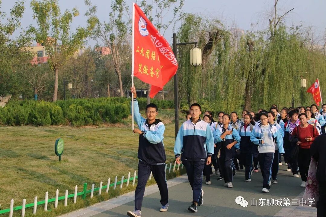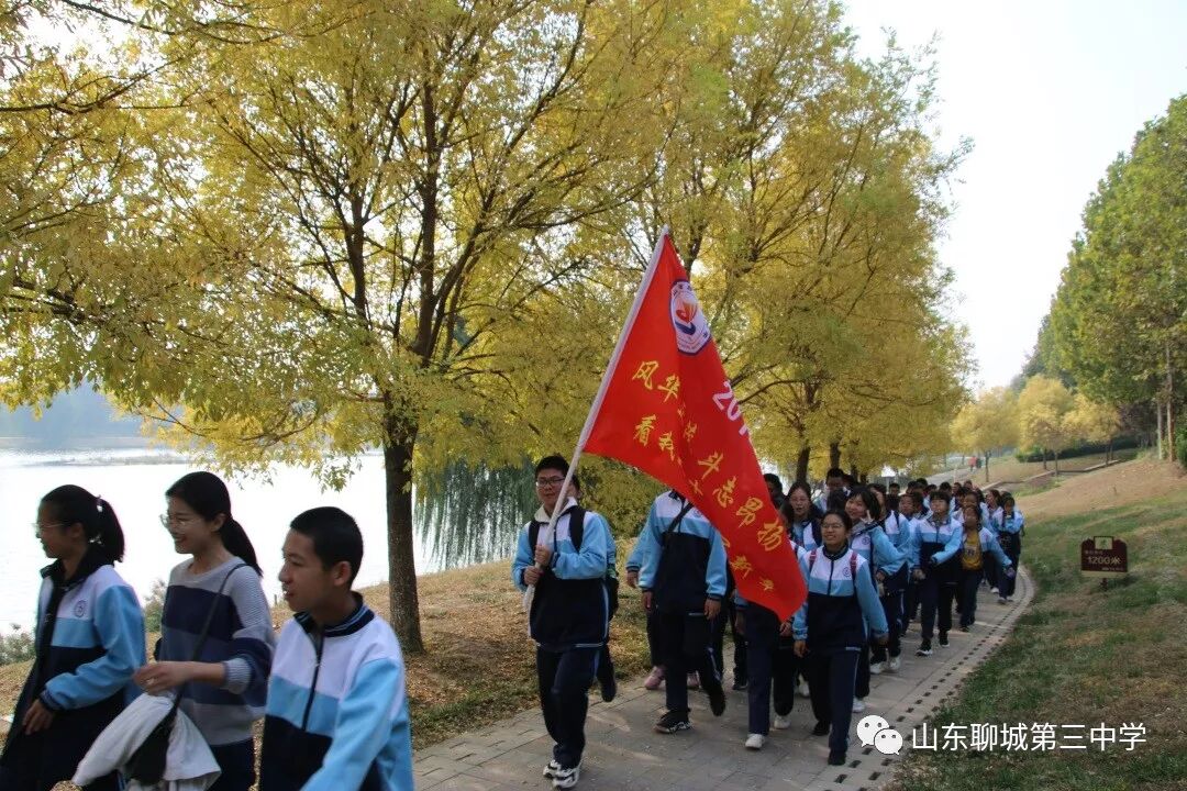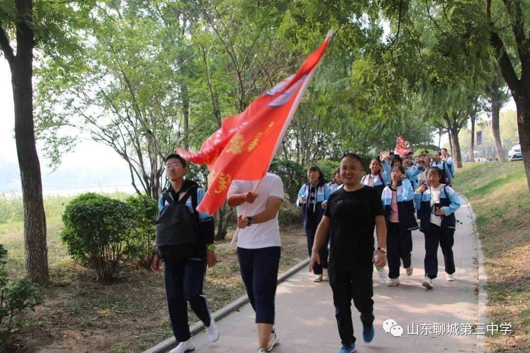 读万卷书,行万里路。10月20日,聊城三中组织2019级高一年级全体师生开展励志远足活动。聊城三中德育副校长胡相东向学生代表授校旗并发布远足命令。上午11点30分,师生平安返回校园,行程20公里的远足活动圆满结束。