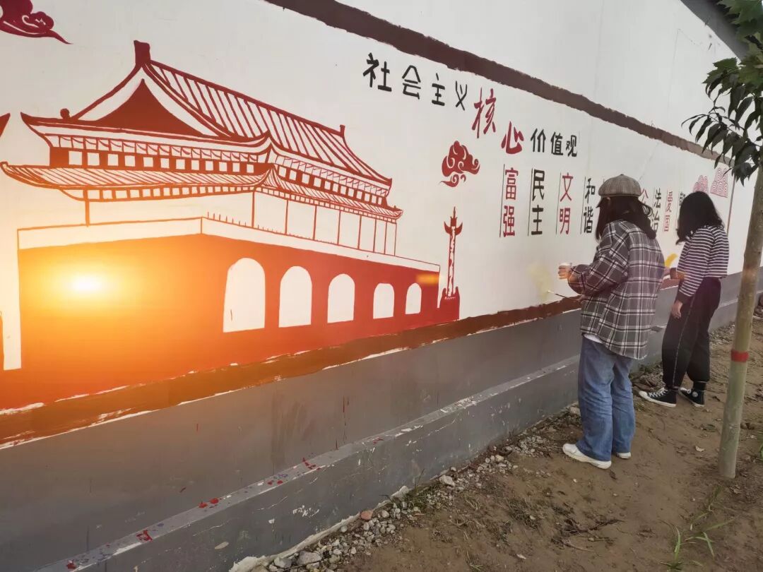 为丰富美丽乡村建设内涵,传递正能量,提高村民文化素质,将社会主义核心价值观植入农村。近日起聊城大学美术学院学子深入侯营镇,用彩绘上墙,宣传社会主义核心价值观。在街道墙上绘上了一幅幅宣传文明、礼仪和国家方针政策等内容的彩绘。