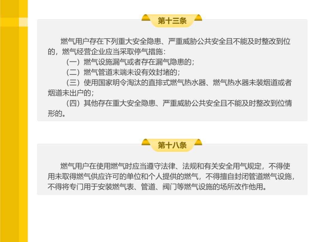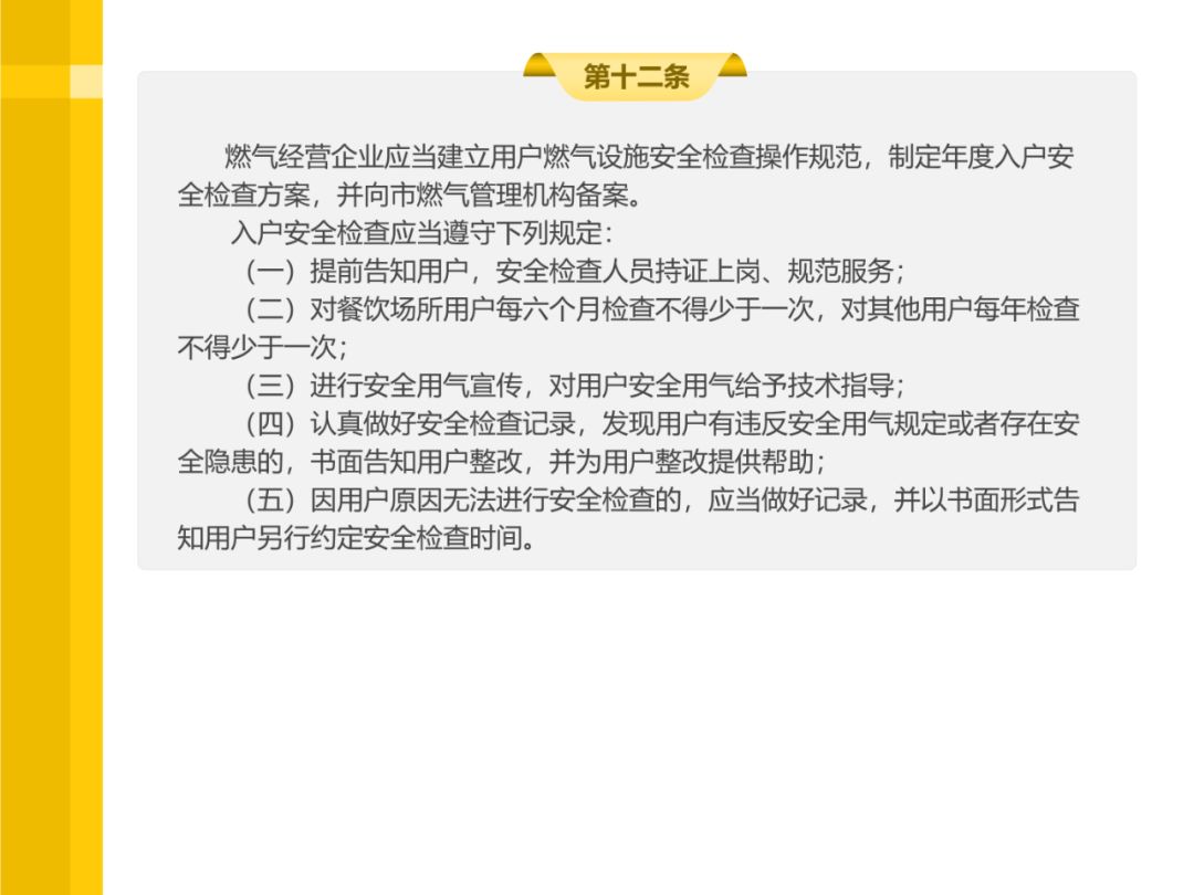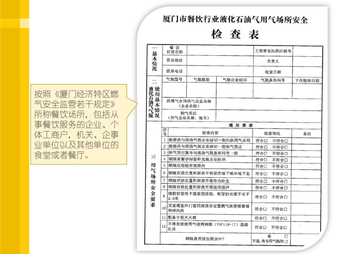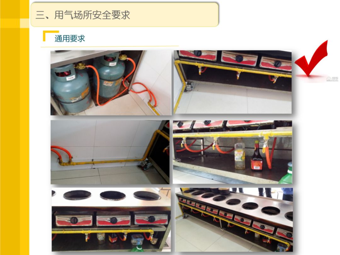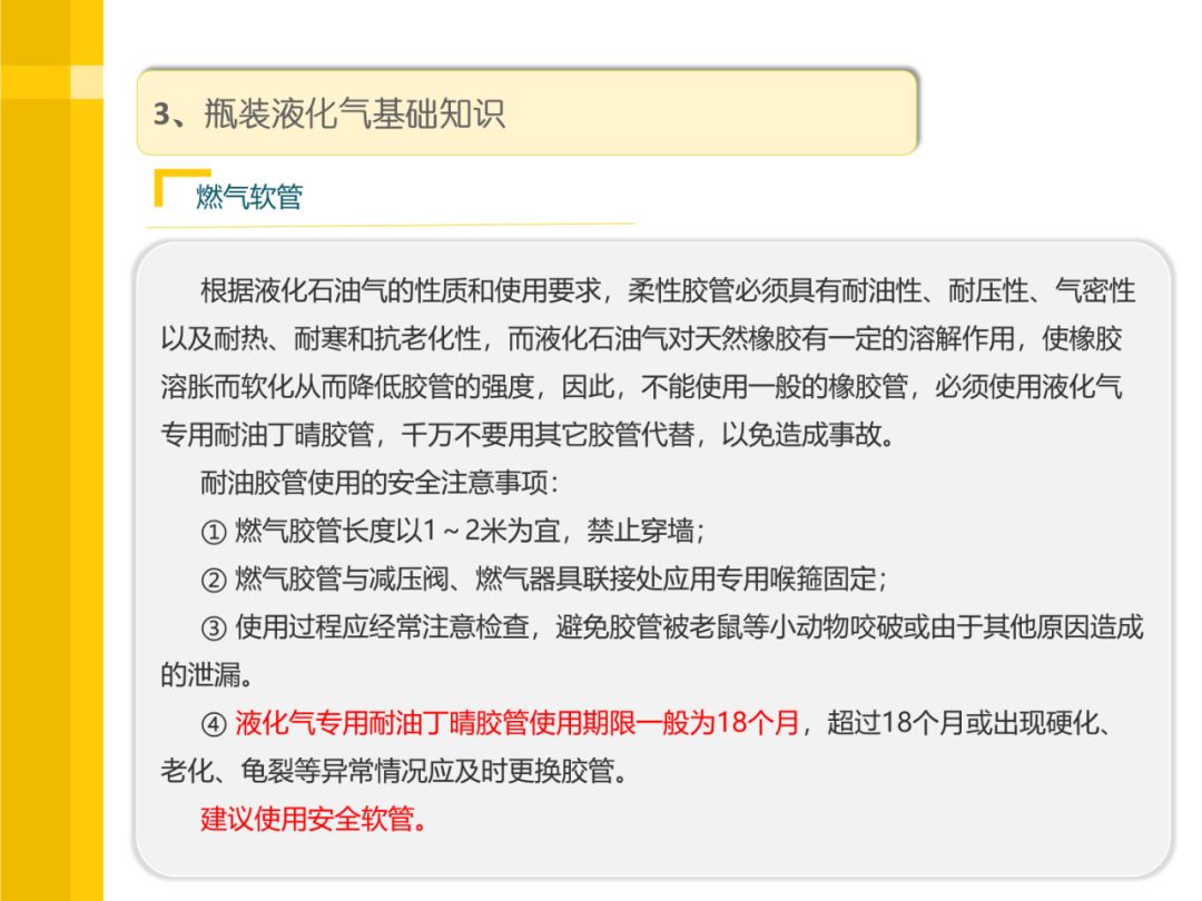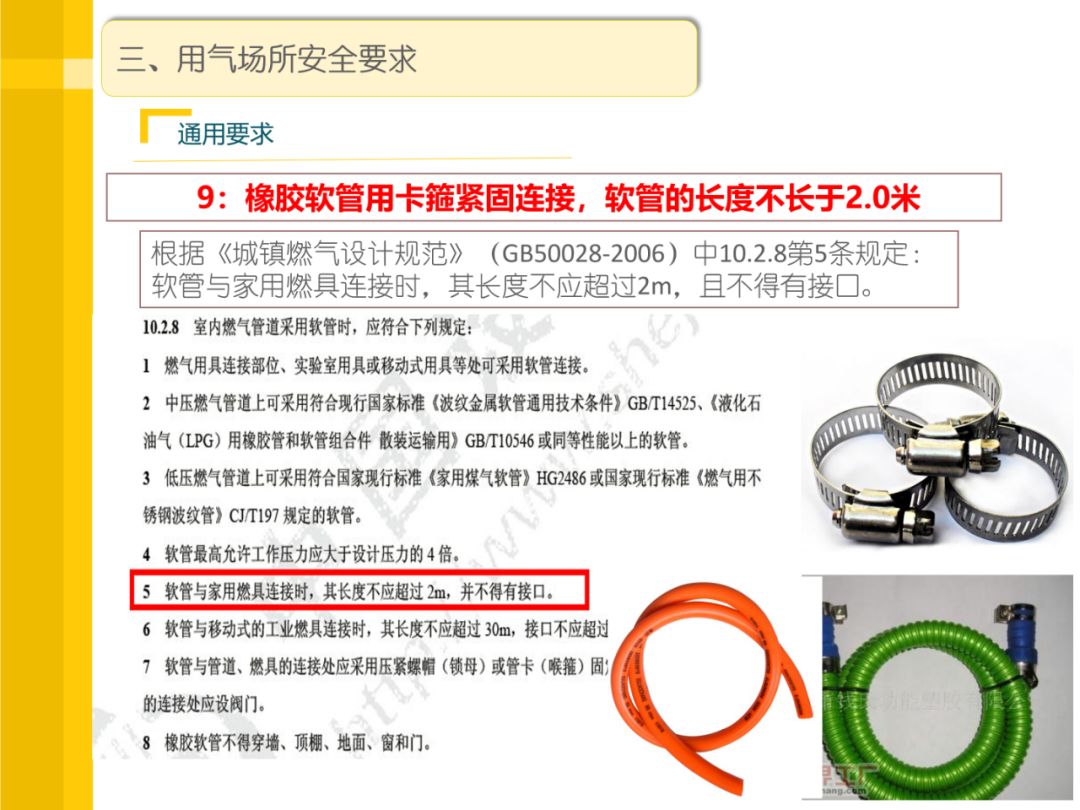 不可私装、改装燃气管路和用具;定期检查,燃气软管、接头,防止老化松动,燃气阀门、接头和管路连接要牢固,松动、老化要及时维修、更换。