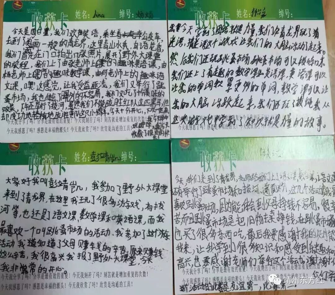 一张张小小的收获卡写满满宝贝们今天一天的收获