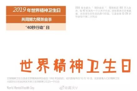 每年的10月10日是“世界精神卫生日”,由世界精神病学协会(World Psychiatric Association WPA)在1992年发起。