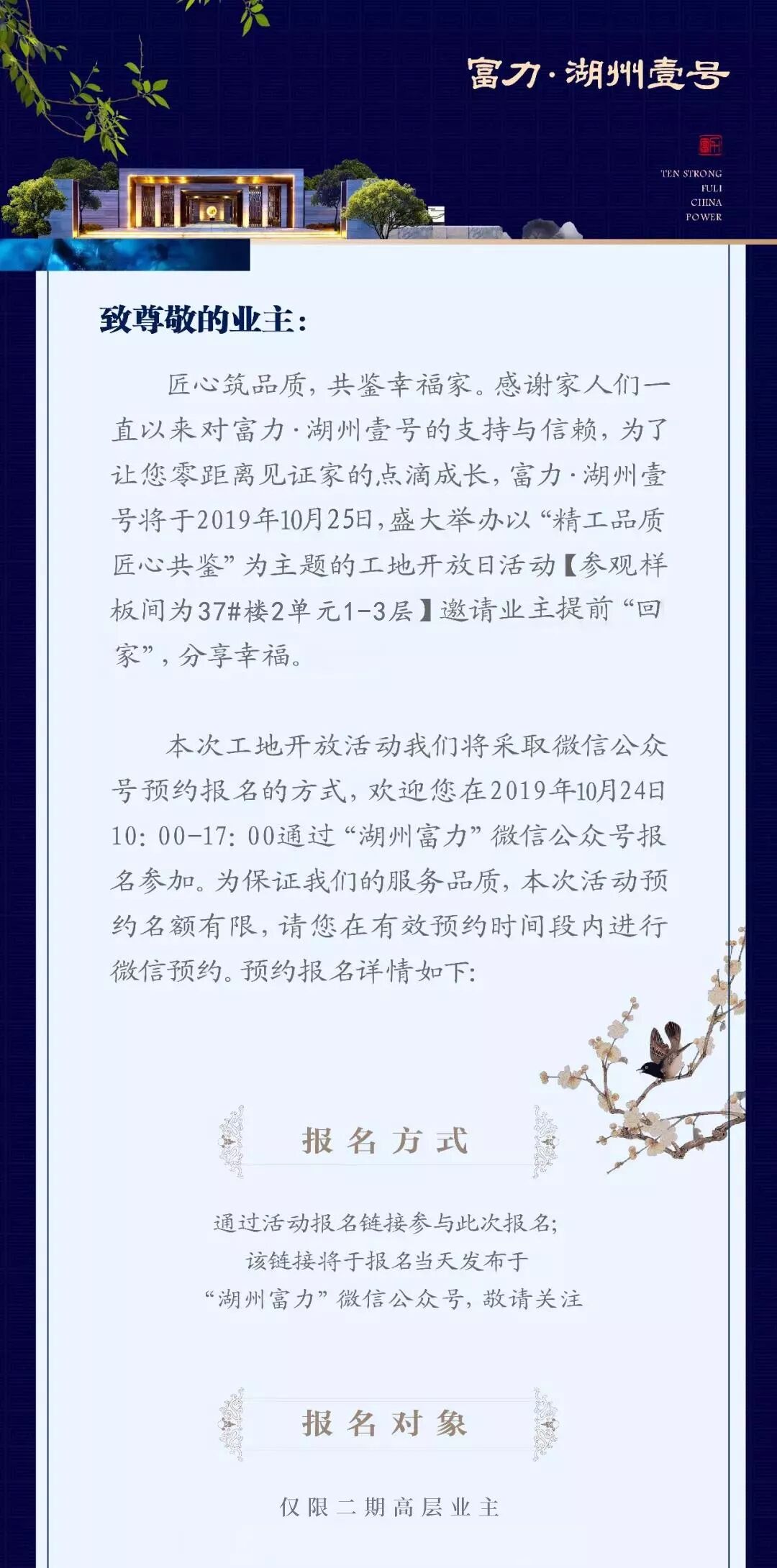 精工品质 匠心共鉴丨富力·湖州壹号二期工地开放活动邀请函