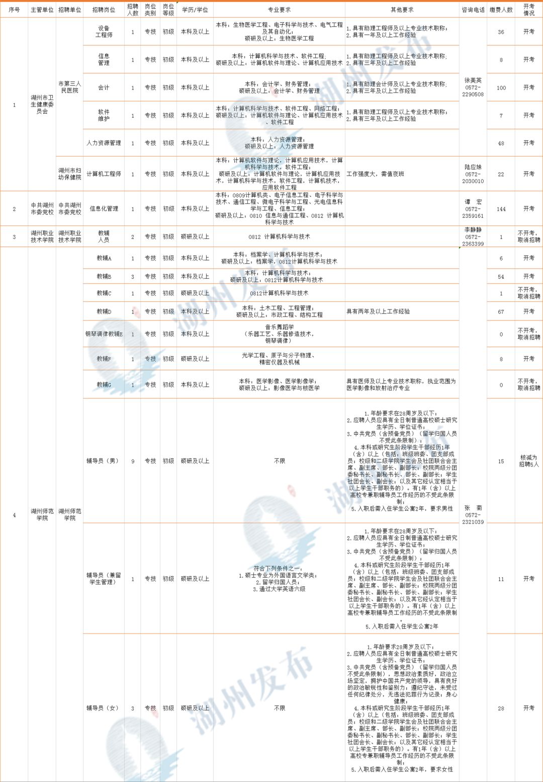 2019年湖州市市级机关事业单位公开招聘编外人员以及2019年下半年湖州市部分市属事业单位公开招聘工作人员活动已停止报名,部分岗位报名人数未达到规定比例,将取消招聘。具体报名情况以及岗位核减情况如下,点击图片可放大看。↓↓↓
