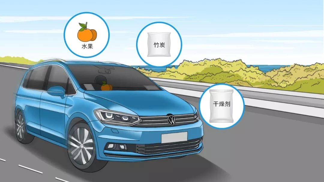 在车内放置干燥剂、竹炭等吸湿物品,也可有效除湿。如果爱车闻起来有霉味儿,可备几个橙子或柚子,用自然的水果香味去除异味。