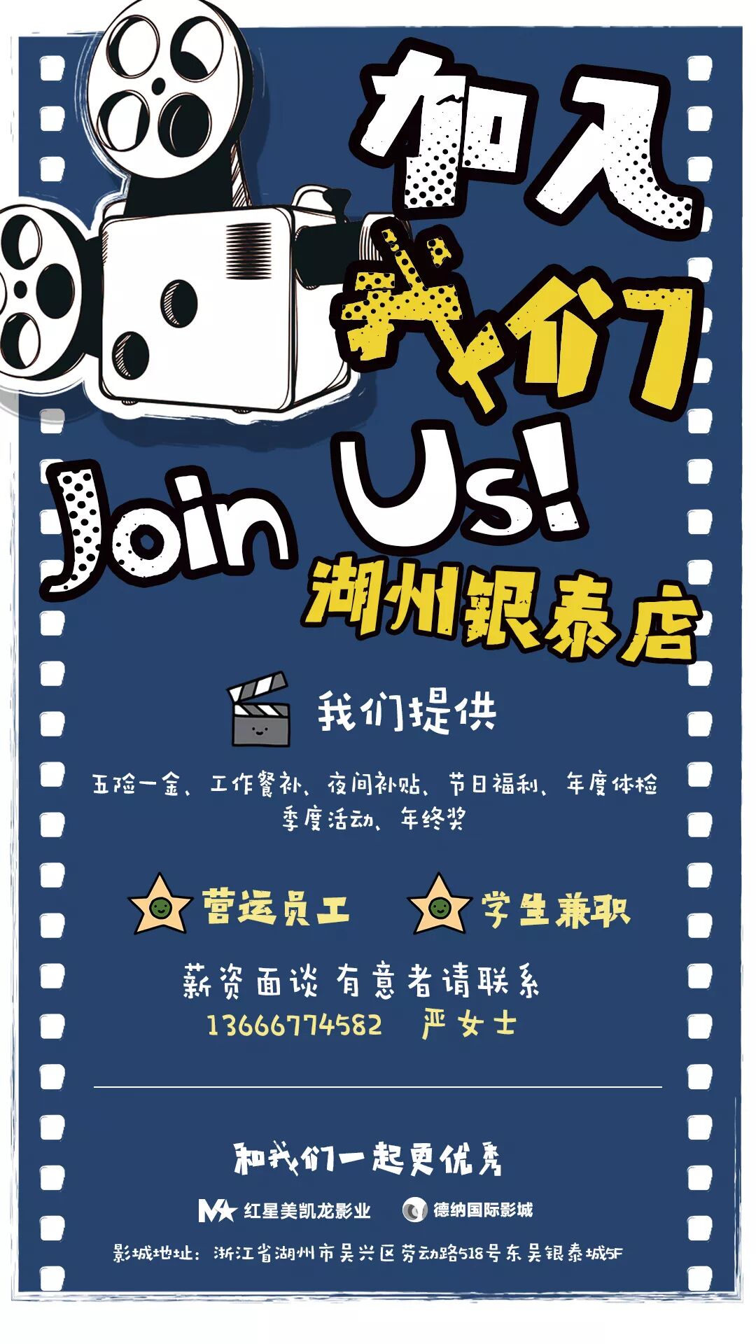 如有意向,且符合以上要求者,请直接前往影城五楼值班经理办公室面试,或致电咨询 严女士:13666774582
