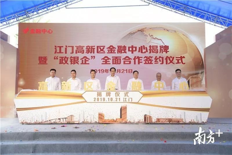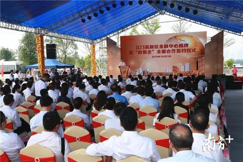10月21日,江门高新区举行金融中心正式揭牌启用,未来为江门市、大湾区以及“一带一路”沿线国家搭建金融纽带。同时,当天还进行了“政银企”全面合作签约仪式。市政府党组成员容福华,高新区党工委书记、管委会主任,江海区委书记彭章瑞,高新区管委会常务副主任、江海区区长劳茂昌及金融机构代表等200多人出席活动。