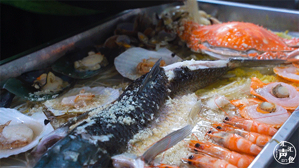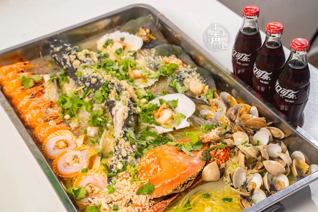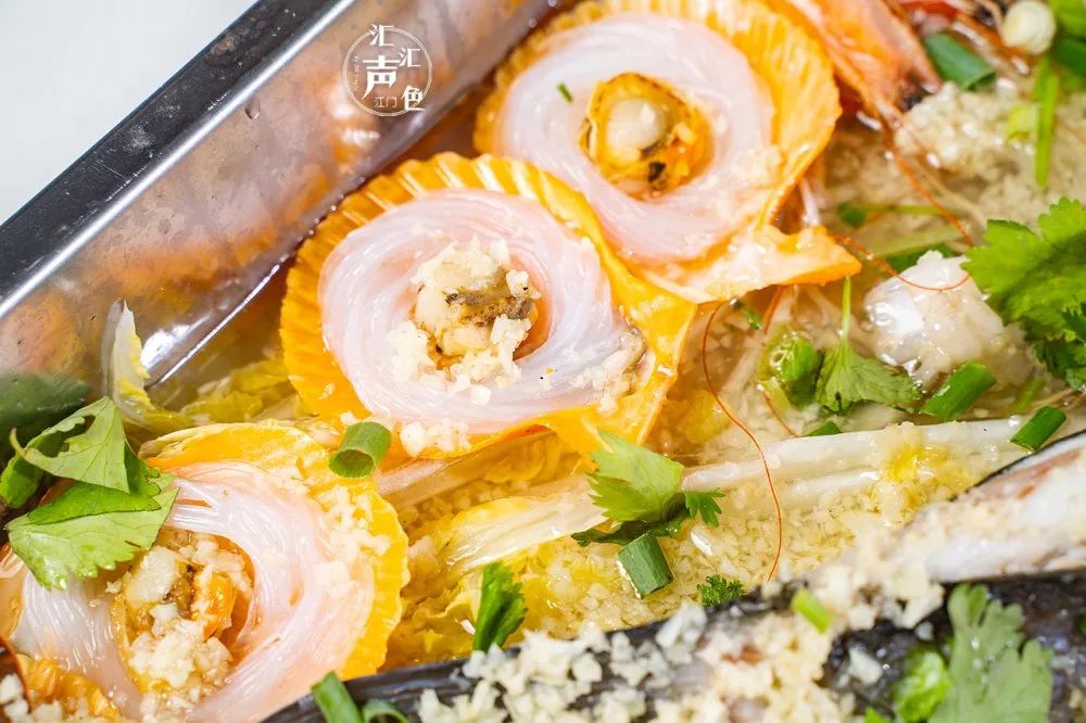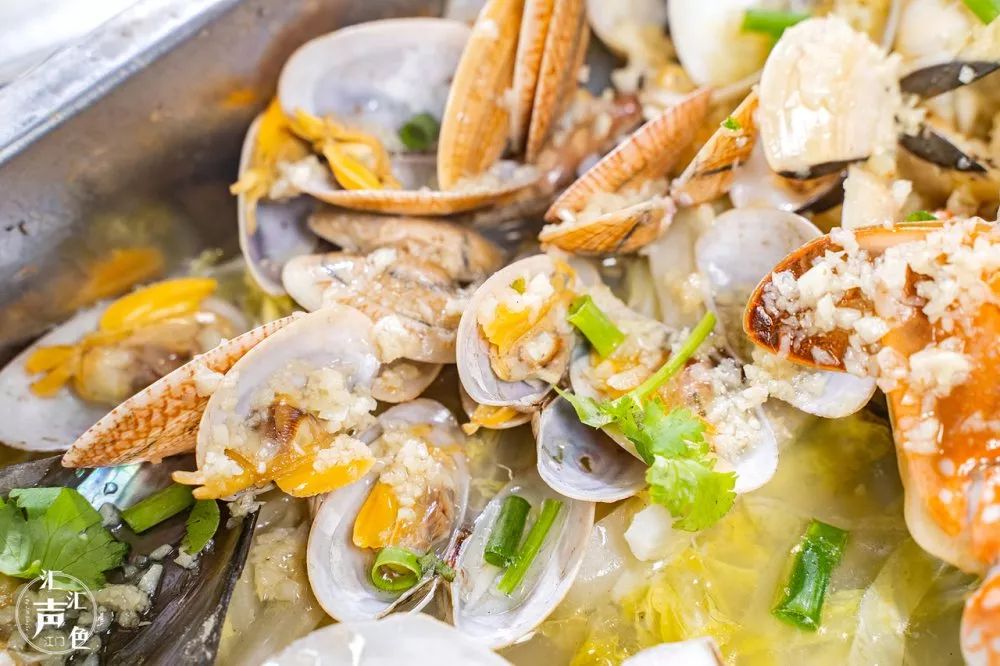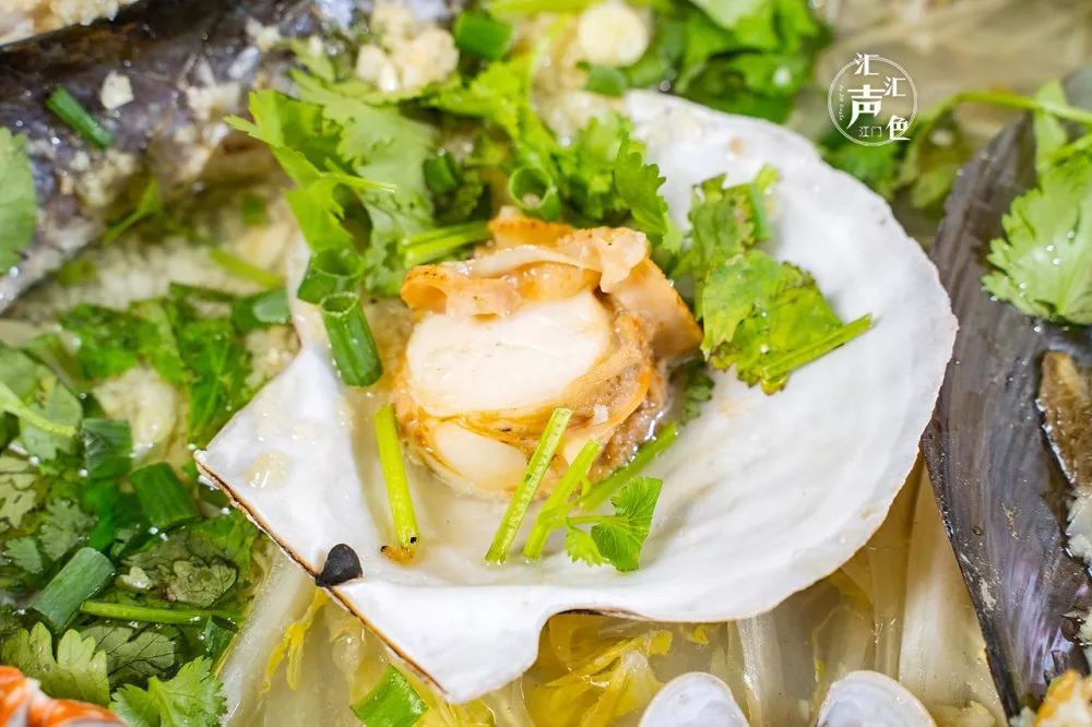 黄金贝、扇贝、花蟹、带子鲩鱼、白贝、花甲、鲜虾